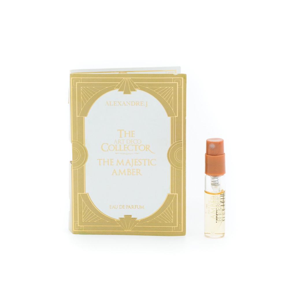 Alexandre. J The Majestic Amber to hołd dla ery Art Deco, inspirowany wazonami, które w tym czasie zaczęły być wprowadzane na rynek przez domy perfumeryjne.