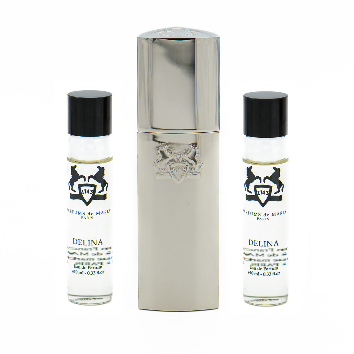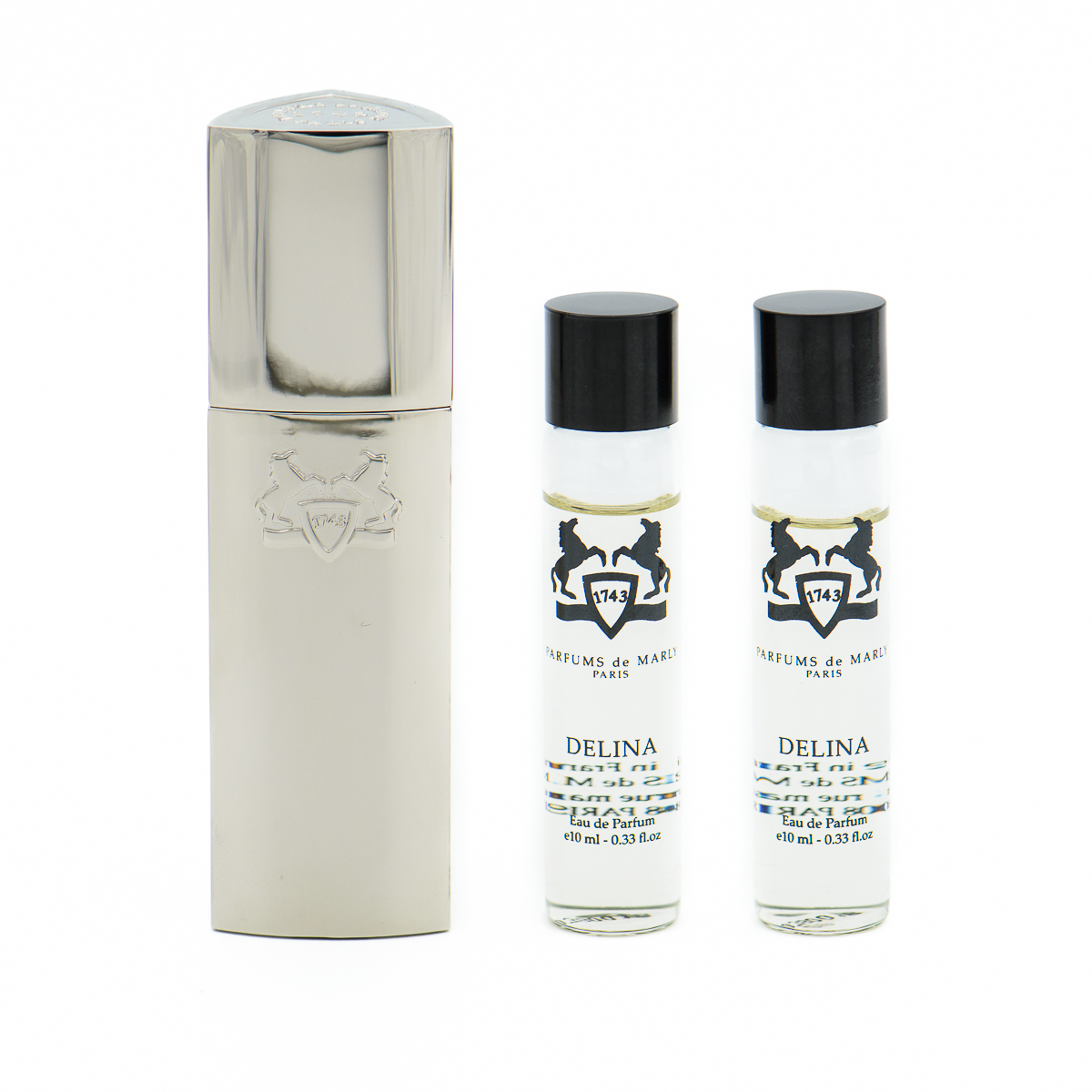 Delina to prawdziwy bestseller marki Parfums de Marly – zapach kobiecy, zmysłowy i niezwykle elegancki. W tej odsłonie dostępny jest w luksusowym zestawie podróżnym 3 × 10 ml, zamkniętym w eleganckim, metalowym etui (travel case), które możesz wielokrotnie uzupełniać wkładami.